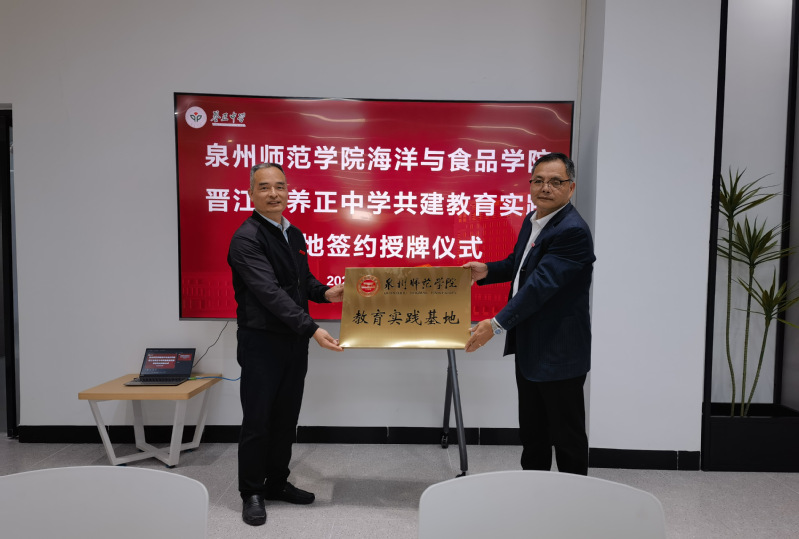 1127日,与晋江市养正中学共建教育实践基地签约授牌仪式在晋江市养正中学新校区图书馆居正堂举行。养正中学党委书记兼校长王宽购、副校长林胜利、教务处副主任林火炬、段勇、杜惠东,学术委员会顾问施茂庆、生物教研组长卢宝勇,学院党委书记蔡志荣、副院长梁鹏、生物科学系主任陈细香、副主任王艺璇等参加仪式由养正中学校长助理、教务处主任苏清水主持。
