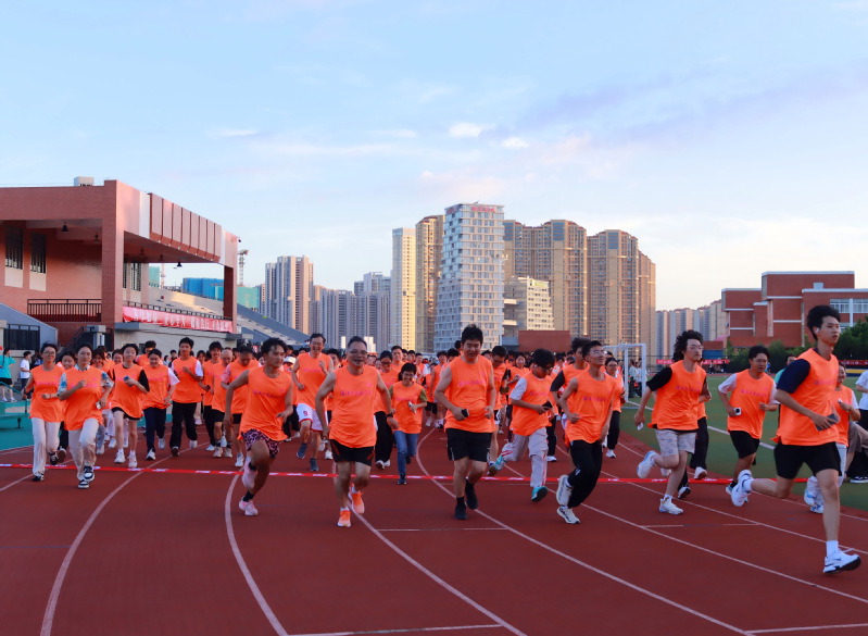 发令声响,身着统一橙色服装的师生们化作一道道“海洋橙”,如奔涌的浪潮般环绕跑道,身姿挺拔、步伐铿锵。跑道旁,啦啦队队员们挥舞着鲜红的国旗,此起彼伏的呐喊助威声与欢笑声交织在一起,不仅为奔跑的师生注入力量,更营造出师生同心、喜迎国庆的浓厚氛围。“和老师、同学一起朝着同一个方向奔跑,让我真切感受到了集体的凝聚力!”“冲过终点线的那一刻,既热血又激动,这是最特别的开学记忆!”刚跑完步的新生和教师们气喘吁吁却难掩兴奋,纷纷分享参与活动的感受。