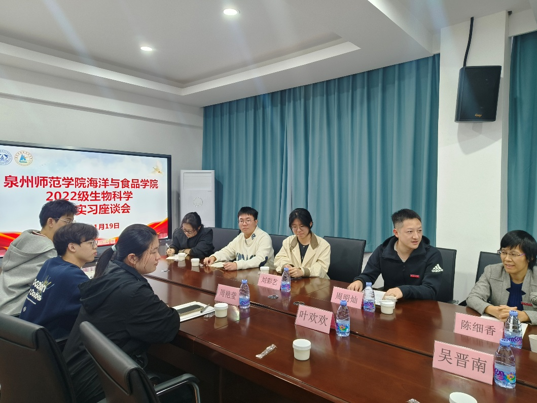为进一步分析生物科学专业教育实习生在岗实践情况,传递学院关怀并加强实践指导,深化高校与中学之间的协同育人机制,日前,学院党委书记蔡志荣、生物科学系主任陈细香、教学科研办副主任林宏、带队老师周明灿及辅导员乐生煊一行5人,前往泉州明新华桥中学走访慰问2022级生物科学专业教育实习生。校长刘伟杰、副校长吴晋南、教务处主任吴金明、办公室主任曾硕萍、指导老师陈燕红、傅青山等领导老师参加座谈。