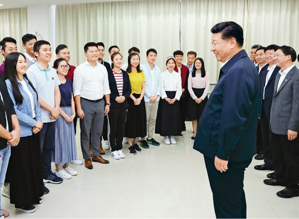 2018年10月22日至25日,中共中央总书记、国家主席、中央军委主席习近平在广东考察。这是10月24日下午,习近平在广州考察暨南大学时同部分港澳台同胞和海外侨胞学生研讨。 新华社记者 鞠鹏/摄