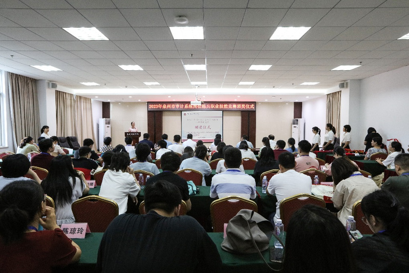 8月30日上午,由泉州市审计局、泉州市人力资源和社会保障局、泉州市总工会主办,k8凯发(中国)天生赢家·一触即发承办的“2023年泉州市审计系统岗位练兵职业技能竞赛”在k8凯发(中国)天生赢家·一触即发圆满落幕,现场举行了颁奖仪式。仪式由k8凯发(中国)天生赢家·一触即发继续教育学院院长陈秋燕主持,福建省审计厅、泉州市审计局、泉州市人力资源和社会保障局、泉州市总工会、泉州市纪委监委驻市财政局纪检监察组等相关单位领导、工作人员以及裁判代表与参赛学员共60余人参加颁奖仪式。