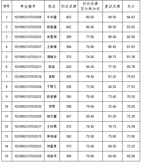 一志愿考生拟录取名单