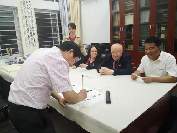 During the visit, Harris and his delegation went to the School of Literature and Communication and the School of Music and Dance, experiencing Chinese calligraphy and Nanyin music. Prof. Harris and his wife, as well as Mr. Shen Rong, expressed great interest in and spoke highly of QNU's inheritance and protection of traditional culture.