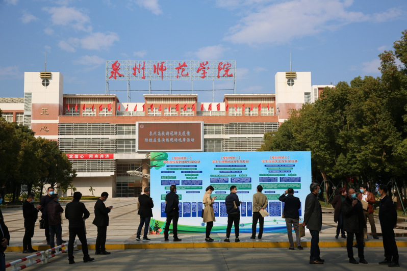 On March 6, Quanzhou collegiate on-site observation of emergency drill on COVID-19 prevention and control was held on Donghai campus of Quanzhou Normal University, for the purpose of putting into place COVID-19 prevention and control measures, improving emergency response, collaboration and handling capacity, and propelling the scientization and standardization of emergency management. There were three simulation scenarios in this exercise, including students' abnormal symptoms such as fever, coughing, fatigue and shortness of breath at registration, during class and in the dormitories.