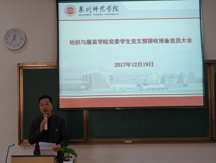 12月19日中午,纺织与服装学院党委学生团支部在荣助梯教212召开接收预备党员大会。纺织与服装学院党委书记张玉武、学生团支部书记聂莹、副书记孙浪涛、辅导员程钟洛,以及学院全体学生党员、入党持续分子参加此次大会。大会由聂莹主持。