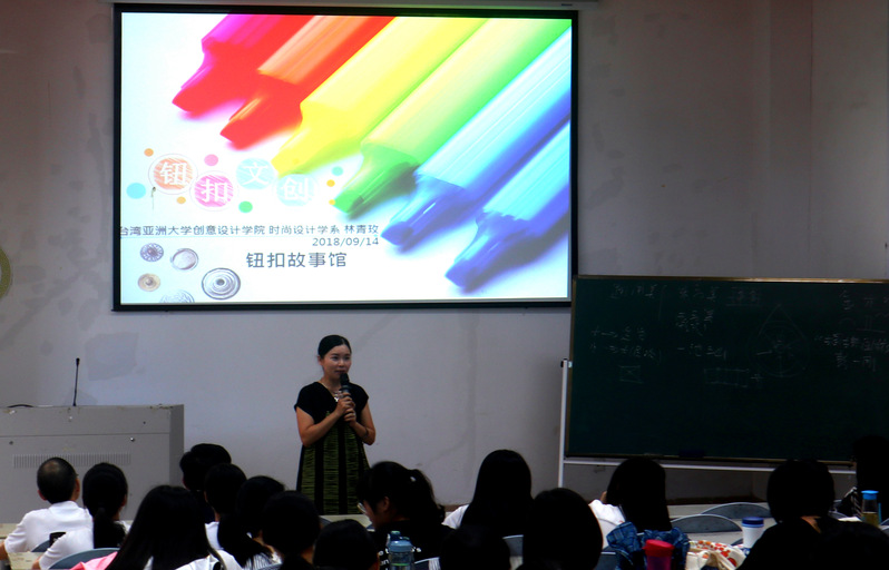 当天下午,林教授又为学院的师生带来了一场精彩的讲座,讲座主题为“钮扣世界中的故事”。讲座从钮扣的起源说起,涉及到钮扣的分类、钮扣在服装中的作用、钮扣的创意设计等。林教授的讲座内容充实、生动、有趣,取得师生的一致好评。