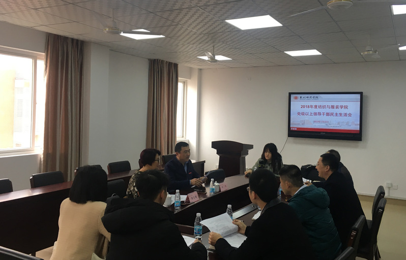 2019122日上午,纺织与服装学院于王爱约实验楼701会议室召开2018年度处级以上党员领导干部民主生活会。校党委副书记林伟、学生处副处长黄志梅莅临参会,会议由学院党委书记张玉武主持,学院各团支部书记、各系主任、科室负责人、党建工作专题会成员参会。