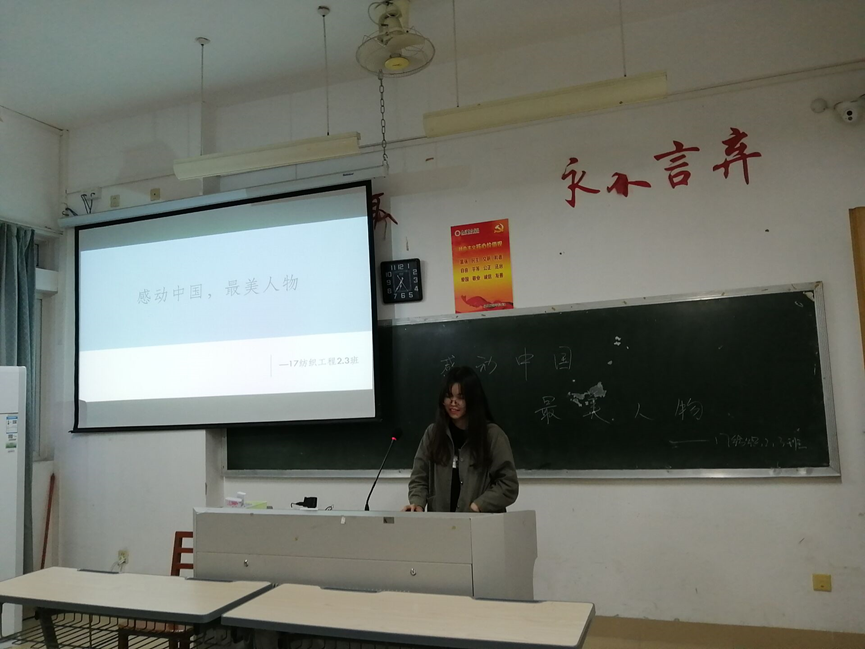 2017级纺织1班以观看视频的形式,帮助同学们分析“最美电网人”李东平的爱岗故事,引导同学们树立甘于奉献、开拓创新的精神。2017级纺织2班以集体讨论的形式,帮助同学们分析身边的楷模人物事例,倡导同学们将模范精神贯彻实施到学习生活当中。