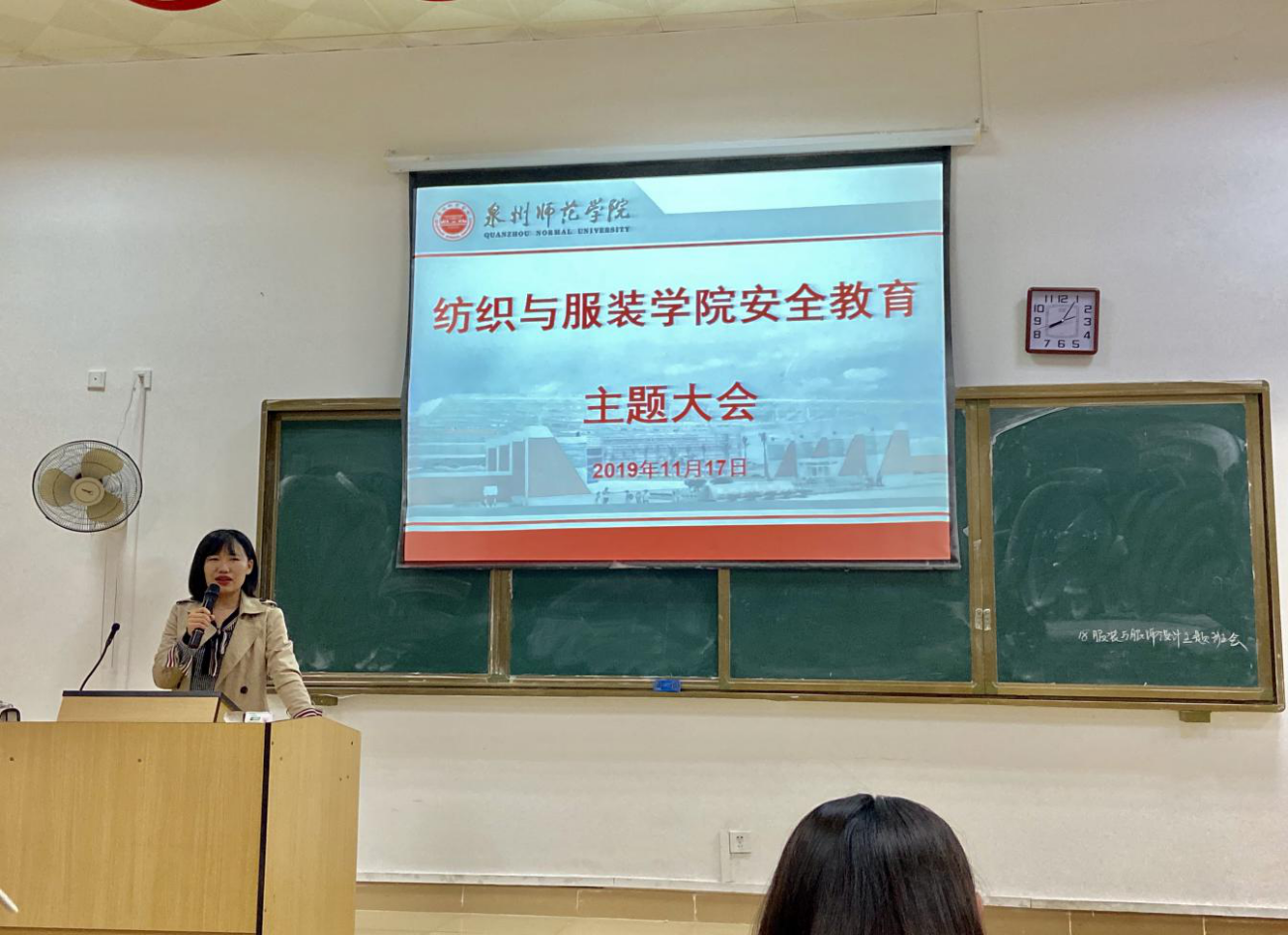 会上,聂莹老师传达学院安全工作会议精神,以近期频发的校园安全事故为例,强调安全稳定的重要性,要求同学们要增强安全意识,提高自我保护能力。程钟洛老师和谢坤宏老师围绕宿舍安全、交通安全、用电安全、食品卫生安全等方面展开叙述,强调同学们要实行安全防范工作,注意宿舍消防安全,骑车乘车安全以及食品卫生安全等。