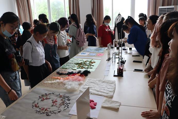 2020级新生在学长学姐的帮助和带领下,有序地完成了电子注册、档案转接、保险办理等一系列入学流程。办理入学手续后,新生们来到我院的特色迎新区,依次参观了服饰设计绘画作品、服装成衣作品及吊染、扎染等染色作品,使新生对所学专业有了进一步认识和分析。