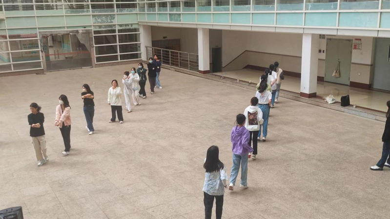 同学们每天中午、晚上两次在中山广场集合,在充分地热身过后,开始排舞训练。排练过程中,同学们热情浓厚、刻苦认真。小到肩膀如何摆动,大到舞蹈时如何变换队形,挥袖轻舞,踮脚弄步,精心打磨,没有丝毫懈怠,舞步由开始的凌乱变得整齐划一。同学之间还相互指正错误、互帮互助,增强了纺服学子的凝聚力。在动感的音乐下,同学们挥洒汗水,有力的脚步声充满能量,以舒展自如的动作尽显青春的模样。同学们热情洋溢的笑脸、青春飞扬的身影成为了校园里一道亮丽的风景线。