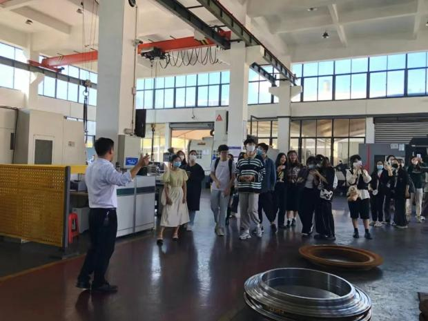 泉州精镁科技有限公司总经办、技术部和人事行政部等部门负责人代表公司对学院师生表示热烈欢迎,并带领师生参观了各个车间生产设备,讲解了纺织机械设备从设计研发、生产制造到组装调试的整条生产工艺。