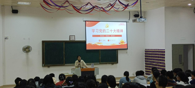 团委委员陈灿辉着重讲解了党的二十大胜利召开的时代背景、重大意义以及会议的主要任务和核心内容。