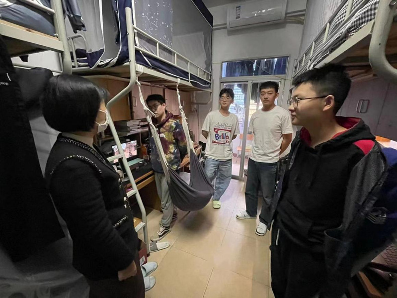 2月23日下午,纺织与服装学院院长邱夷平、党委书记黄国波、副院长徐海燕及全体辅导员深入学生宿舍,实地分析开学后同学们的学习、生活、思想状况。