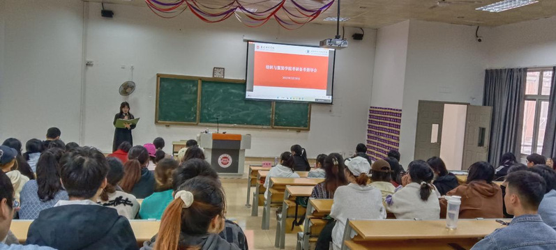 黄国波充分肯定了2020级同学们早规划、早准备、早行动的持续态度和行动力,强调考研是一条漫漫求索的求知之路,除了实行学习计划,讲求学习方法,提高复习效率,更要端正态度,坚定毅力,拼搏奋进。