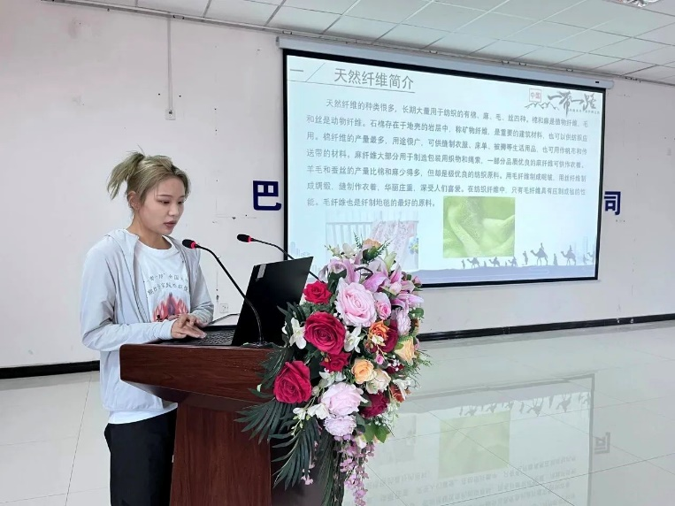 7月15日,库尔勒小分队成员、纺织与服装学院2021级研究生胡启文结合自身专业知识为企业骨干们进行专业培训,分享课题研究最新成果、介绍新疆棉类产业开发情况,并针对产业优势、产业基本状况、基地建设状况等进行总结。巴州金富特种纱业有限公司负责人表示,此次授课对企业开展具有重要意义,希望今后有更多纺织学子来到新疆,为纺织产业注入新鲜力量,助力纺织产业进一步开展。