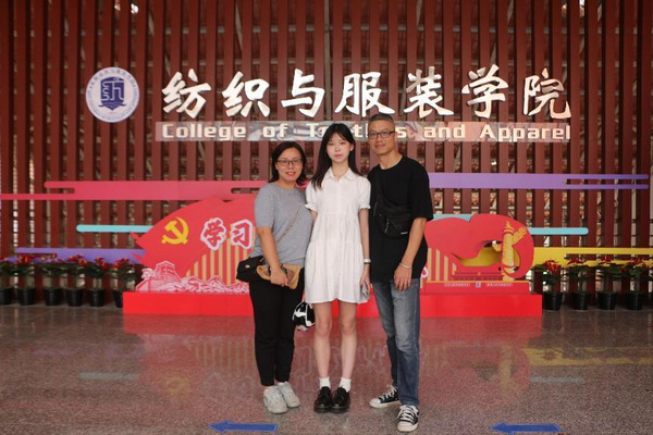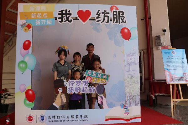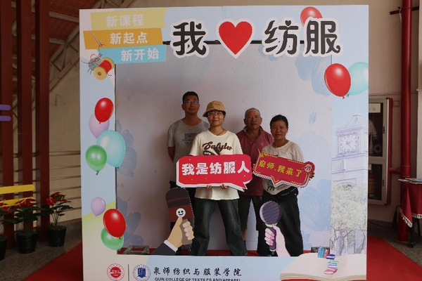 二是“我来‘纺服’打个卡”。照片是留住时光最好的方式,学院定制“我爱纺服”“心怀梦想,扬帆起航”“我是纺服人”等各式展板,妙趣横生,吸引新生及家长不断驻足拍照打卡。顺利获得照片将青春的注脚在这一刻定格,希望同学们怀揣着赤诚之心,谱写大学生涯新篇章。