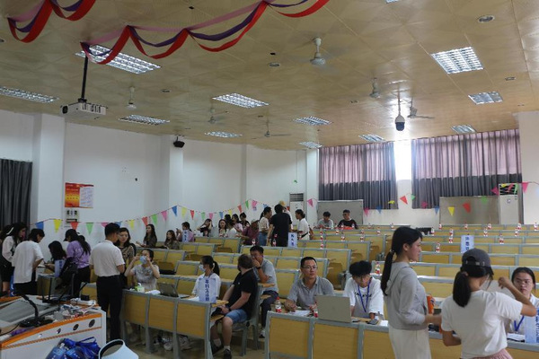 在荣助楼报到现场,学院领导,“三办”工作人员及部分青年教师、学生志愿者分工协作,密切配合,引导新生高效、便捷、有序地完成报到。