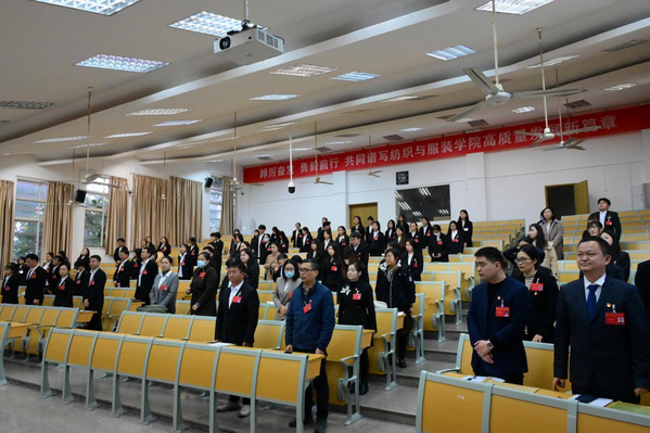 大会号召,全院师生党员高举习近平新时代中国特色社会主义思想伟大旗帜,认真贯彻落实党的二十大和二十届二中全会精神,迎难而上、逆风展翅,齐心协力、奋勇争先,以更宏伟的战略视野、更卓越的创新精神、更强烈的改革意识、更自觉的使命担当,凝神聚力、奋发有为,主动投身学院新一轮改革开展的浪潮中,为加快推进建设特色鲜明的一流应用型大学,建设特色鲜明的地方高水平纺织服装学院而努力奋斗!