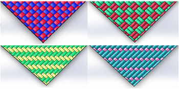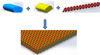 本建模方法采用国际知名的三维设计建模软件Solidworks®,对二维/三维织物进行三维模型建立。顺利获得扫描电镜测量真实织物的细观尺寸,基于所获取的细观尺寸建立纱线截面及纱线中心轴的运动路径,最终建立二维/三维织物的纱线模型,并顺利获得纱线模型装配进一步得到二维/三维织物模型。该模型可以快速便捷地运用在ANSYS®,ABAQUS®等有限元分析系统,该模型可以被运用在织物及其复合材料的各项力学测试,和电磁学,热力学、声学、光学等多项技术领域。