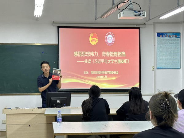 辅导员李晓希提到,《习近平与大学生朋友们》是一本记录习近平同志与大学生朋友们研讨互动的书籍。顺利获得这本书,同学们可以更深入地分析习近平同志的治国理念、人生观点以及对青年一代的殷切期望。她鼓励同学们要坚定理想信念、勤奋学习、勇于实践、担当起时代责任,为实现中华民族伟大复兴的中国梦贡献自己的力量。