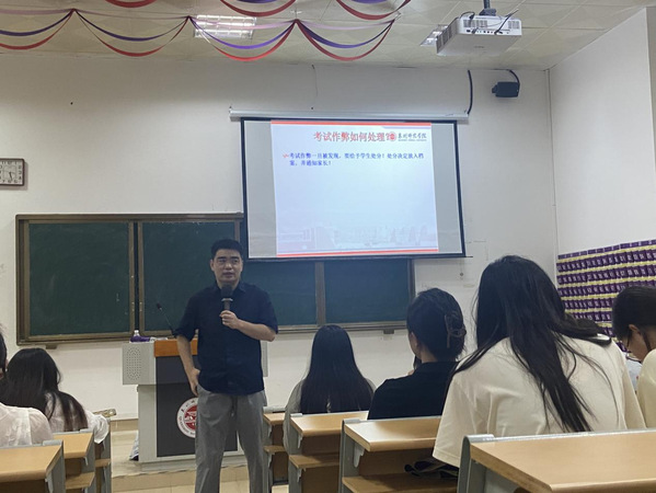 辅导员就考试纪律、诚信考试等方面进行了强调,列举了考试作弊的严重后果,要求同学们在考试过程中要严守诚信原则,坚决杜绝作弊行为,为自己和他人创造一个公平、公正的考试环境。同时,辅导员们还提醒同学们,面对期末考试的压力,要学会自我调适,保持良好的心态,在学习之余要注重身心健康,合理安排休闲娱乐活动,以缓解压力。
