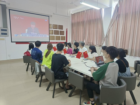 7月19日上午10时,中共中央举行新闻发布会,介绍和解读党的二十届三中全会精神。纺织与服装学院党委组织师生党员以集中和分散相结合的方式收看新闻发布会直播。