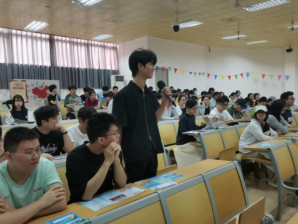 郑锦滨顺利获得生动的视频展示和精彩的演讲,全方位地向同学们展示了安踏公司的企业文化、开展历程、目标愿景以及品牌矩阵布局。他详细介绍了企业的人才需求、福利待遇、晋升通道等方面内容,鼓励同学们持续投递简历。宣讲会上,企业设置了有奖问答及线上抽奖环节,同学们纷纷举手,扫码抽奖,现场气氛热烈。