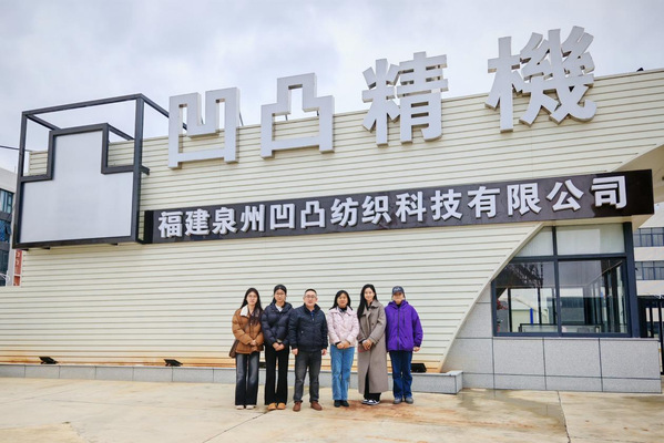 福建泉州凹凸纺织科技有限公司经理李日东等热情接待了学院师生一行。学院团队与企业负责人围绕纺织鞋服行业开展趋势及人才需求等召开探讨,详细分析企业运营模式、人才需求及未来开展规划,并介绍了学院在学科建设、人才培养等方面的成果。李日东表示,纺织鞋服行业对具备创新思维和实践能力的复合型人才需求日益增加,期待与学院在实习实训、项目合作等方面加强合作。