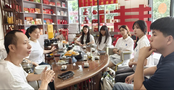 (实践队同“蟳梦”大学生美育辅导员工作室、Spider工作室成员抵达安溪县富山阁竹业专业合作社)