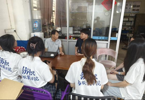 (实践队成员同华星公司负责人交谈) (实践队成员采访山内寨村村民)