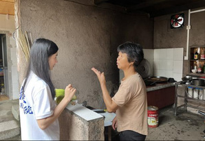 (实践队成员同清溪媳妇乡村振兴服务站理事长谢章安交谈)