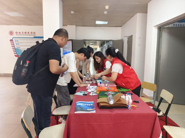 四是“一布一迹 浸润匠心”。同学们亲手用不织布材料制作钥匙扣等小挂件,在创作中认识非织造材料的特性,体验结构设计的乐趣。每一针缝合、每一次剪裁,都是对工匠精神的初步感知。每一件专属作品,也成为新生认同纺服、融入纺服的独特见证。
