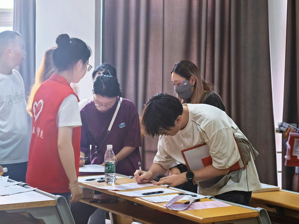 在荣助楼报到现场,“三办”工作人员、学生志愿者分工协作、密切配合,引导新生高效、便捷、有序地完成报到。