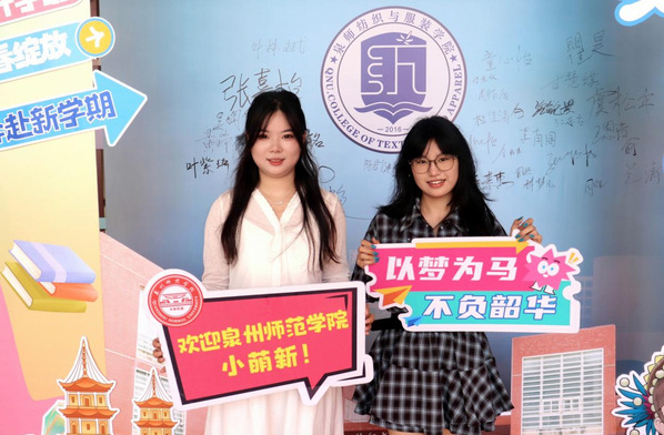 一是“印记青春,筑梦泉师”。新生们在这里定格初入校园的鲜活笑容,在学院纪念板上留下属于自己的青春印记。这不仅是一场美好的初见,更成为他们快速融入纺服大家庭的起点。许多新生表示,从这里开始,他们正式开启了“以梦为马”的大学筑梦旅程。