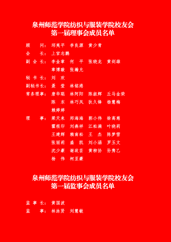 新当选第一届理事会、监事会成员名单▲