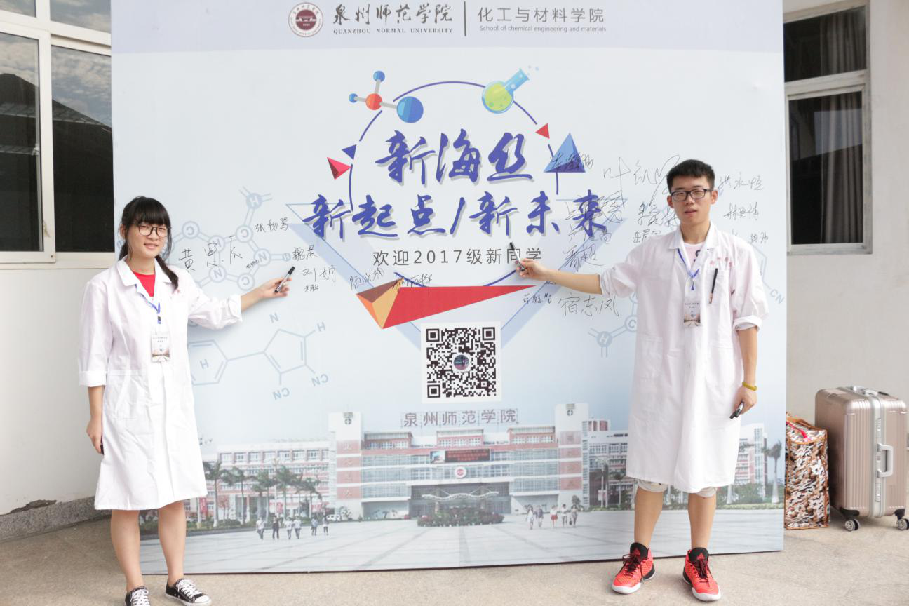 2017年9月9日,k8凯发(中国)天生赢家·一触即发化工与材料学院迎来了2017届的新生们。对于此次迎新活动,化工学院三委会全体成员及辅导员陈淑霞老师、许永贤老师筹办了以“新海丝、新起点、新未来”为主题的特色活动。