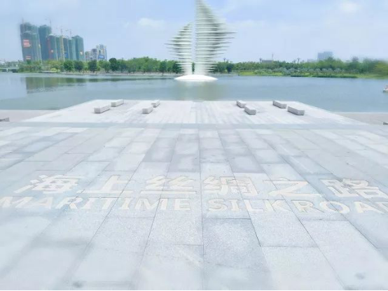 走进艺术园我们可发现一幅地面石刻地图,它如实的复原了历史上的海上丝绸之路。