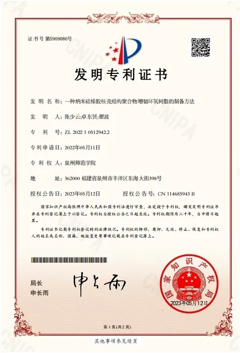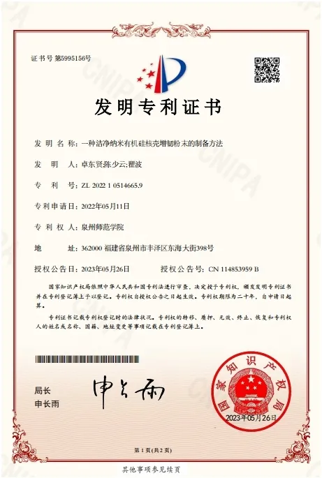 此次转让的专利是由我院卓东贤教授及其科研团队研发的“一种洁净纳米有机硅核壳增韧粉末的制备方法”等3项与有机硅核壳增韧剂粉体、有机硅核壳增韧剂改性环氧树脂及在3D打印领域的应用相关的技术。该技术成功打破了国外跨国公司对我国在工程塑料、高性能复合材料与胶粘剂等领域的低温增韧这一尖端“卡脖子”技术的封锁。