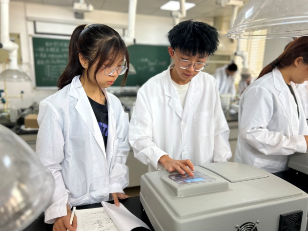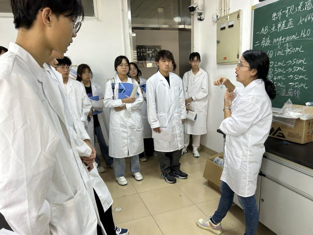 黄绵丽博士从紫外可见光谱测定的原理出发,详细说明了实验步骤、实验仪器、实验注意事项及实验应用场景,并进行现场演示实验操作,让同学们对整个实验流程有清晰的分析。接着,学生进行分组实验(授课专业:23高分子,总共54人,分5轮次;本轮次12位同学,分6组,每组2人)。整个公开课内容丰富、思路清晰,学生的实验实践能力得到锻炼,对紫外可见光谱原理及其仪器操作有了更深入的认识。