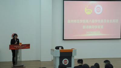 (院第二届学生会主席团成员倪思莹致开幕词)