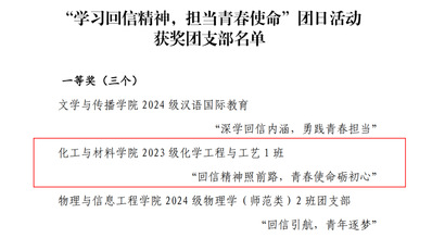我院2023级化学工程与工艺1班在校团委“学习回信精神,担当青春使命”团日活动评比中取得一等奖