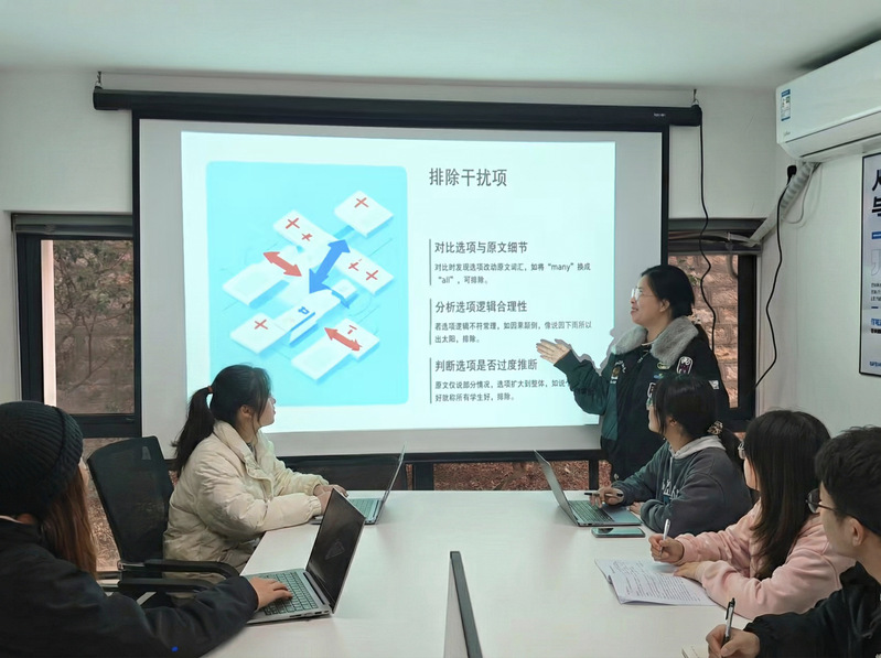 林子榆则聚焦于备考实战技巧,逐一讲解了词汇、阅读、翻译、写作与听力等部分的提升策略。在词汇记忆方面,她推荐了“不背单词”“奶酪单词”等实用工具,并建议结合软件科学规划每日学习任务;在阅读部分,她顺利获得真题实例演示审题与解题顺序,总结了排除干扰项的有效方法;翻译与写作方面,她强调平时应积累高频表达与常用句型,并分享了翻译应急技巧与作文结构模板;听力训练则重点介绍了“精听三步法”及相关学习资源,帮助听力薄弱的同学找到提升方向。