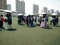 一排嘴里衔着纸杯的女生,在快速地传着水,第一人由于没调整好姿势,大部分的水洒在第二个女生的脸上,但她们丝毫没停下比赛的脚步,继续一杯一杯地传着。最后她们成功了,六个人激动地一起跳了起来,欢呼着……4月2号下午, 由化生自律会举办的宿舍文化艺术节的第一环节—--默契大考验在操场拉开帷幕。此次活动是由“杯水传情”、“袋鼠跳”、“撕名牌”、“保护舍长”和“舞动呼啦圈”五个游戏组成。
