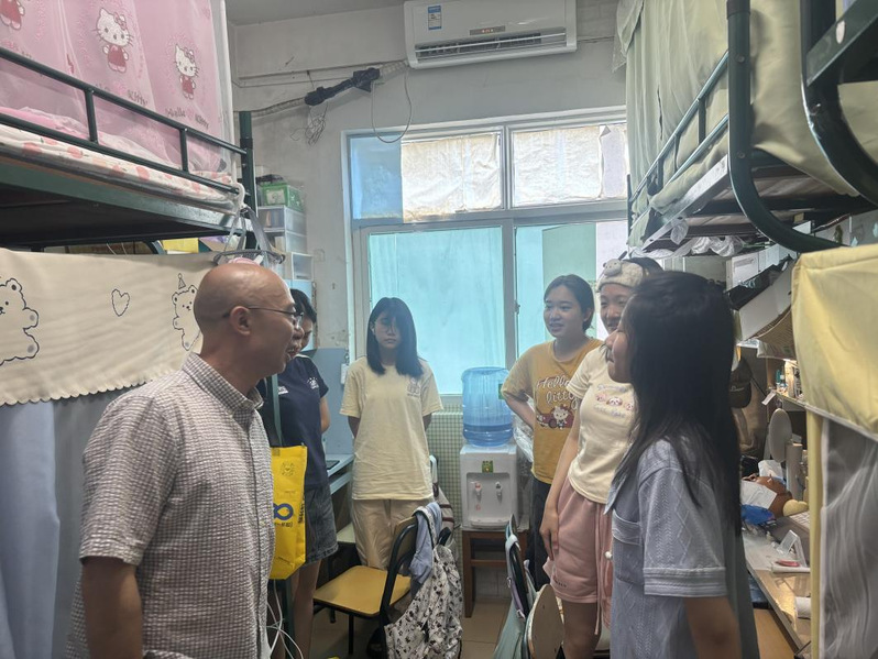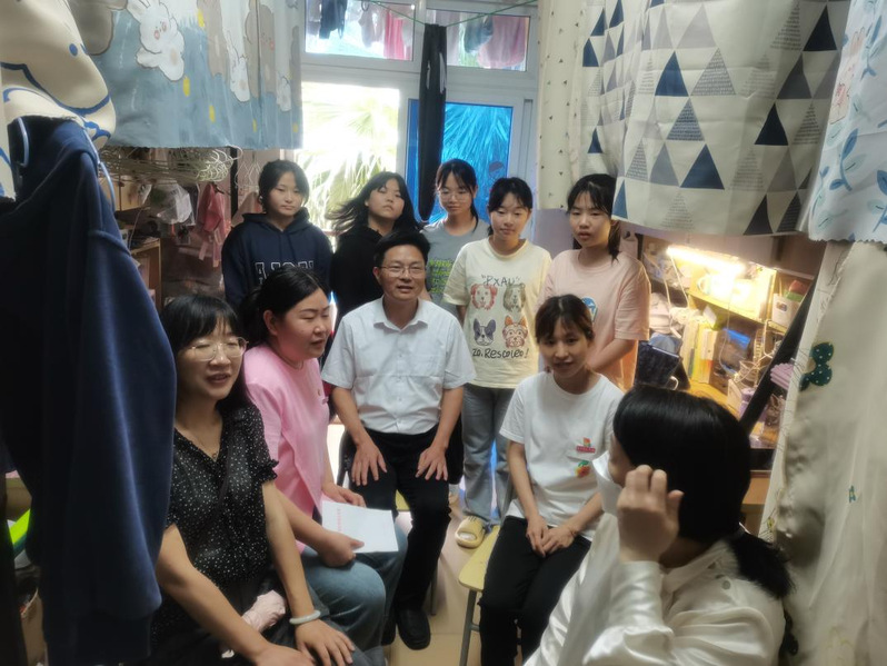 学习后,教师党员们到学生公寓区走访学生宿舍,与学生“拉家常、聊近况、话学业”。走访学生宿舍期间,教师党员们就宿舍安全、宿舍卫生、宿舍文化等与同学们进行了近距离研讨,希望同学们持续构建和谐、文明、安全的宿舍环境;同时,党员们深入分析了学生们的学习情况、生活状态和思想动态,倾听他们的困惑与心声,以及同学们的急难愁盼问题,耐心为同学们解疑释惑,鼓励同学们勇敢面对困难,坚定信心,努力追求梦想。