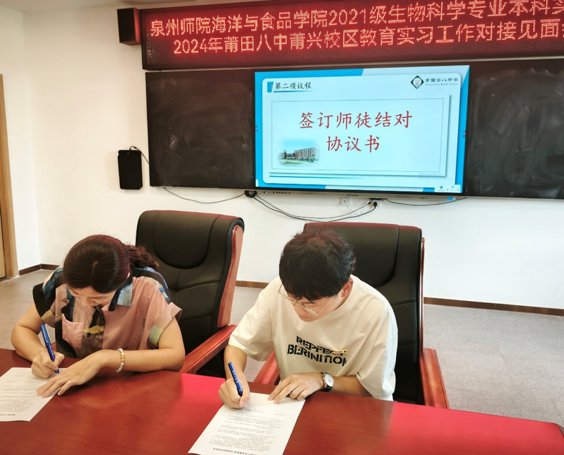 为更好实现教学理论知识与教学技能的结合,提升师范生教育实践、综合素质能力,强化师范生教书育人初心,2024年9月8日,泉州师院海洋与食品学院2021级生物科学专业的20位实习生前往莆田第八中学召开为期16周的秋季集中教育实习,其中10位实习生在莆田八中高中部(莆兴校区)实习,另10位实习生在八中初中部(鳌峰校区)实习,并于9月19日举行了教育实习见面会。