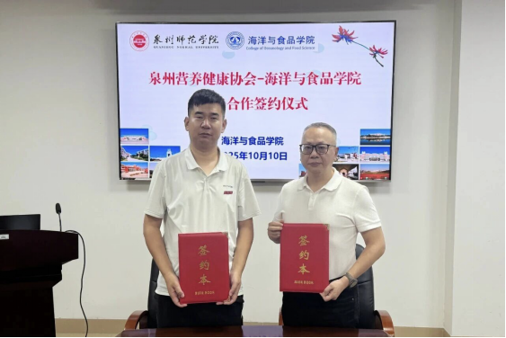 会后,学院与协会正式签订战略合作协议。此次签约标志着我院与协会建立“服务企业、共建共赢”的长效合作机制。未来,我院将持续立足自身学科优势与开展定位,依托泉州海洋文化与食品产业基础,深化产教融合、科教协同,在海洋食品开发、营养健康服务等领域持续发力,为泉州营养健康产业高质量开展注入“海食力量”,助力区域经济社会开展。
