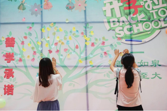 环节二名为“善学承诺”。以“善学”和“正心”为主题,将学院一贯重视的学风建设思想传播下去。在为新生庆祝“开学了”的喜悦中,我们将“学”字标红,以9平米大的展板为背景,以智慧之树为支撑,以校训为勉励,新生们将自己“善学承诺”写成树叶,挂在树上,许下“正心行学风”的承诺。