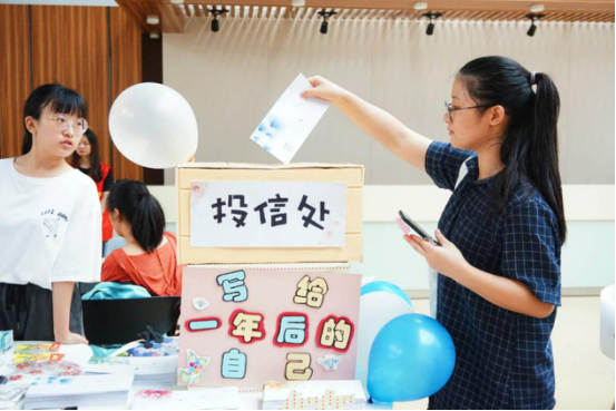 环节一名为“时光信箱”。新生领取明信片和信封,写下对一年后的自己想说的话,放入"信箱"中,一年后会收到自己刚步入大学时候的“初心”。此活动意在让每位新生都能踏上教科的时光机,不忘初心,惜时学习,创造属于自己的美好未来。