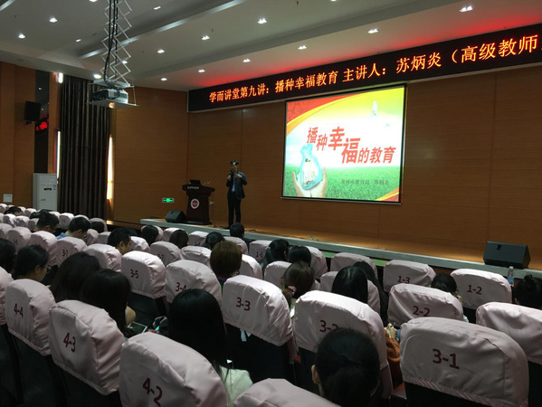 苏炳炎围绕“提升学生核心素养”的教育改革热点问题,结合自身丰富的一线教学、教育管理与国外访学的实践经验,从不同的角度诠释幸福的内涵,分析幸福和教育的关系,剖析学生幸福感偏差的原因,从四个角度重点阐述了如何有效实施幸福教育,讲座深入浅出,引入入胜。(许松芽)